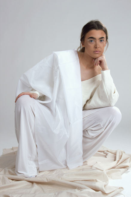 Challenged to create a magazine editorial inspired by artwork, I worked to embody the serenity of stone statues. The essence was captured by sampling a monochromatic colour palette, the layering of materials and statuesque poses. This was my first photoshoot as a Fashion Communication student at LJMU.